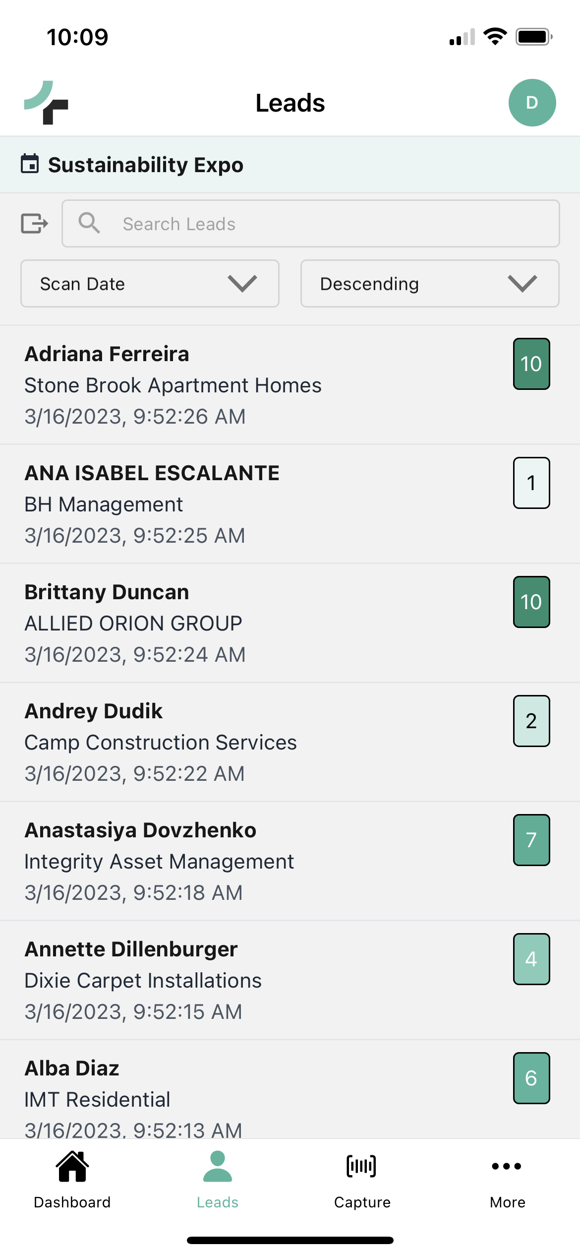 Every Scan is a sales opportunity. Captured, saved, and ready for follow-up.